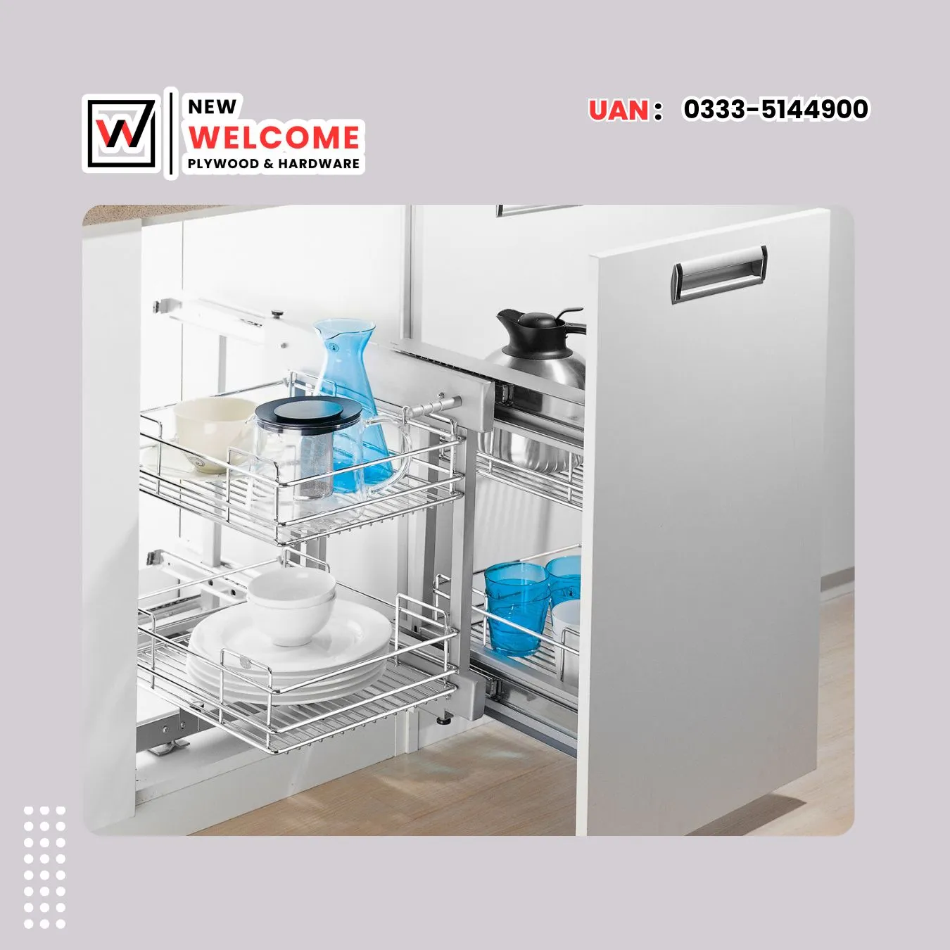 Design: Specially designed basket to fit perfectly in kitchen corner cabinets